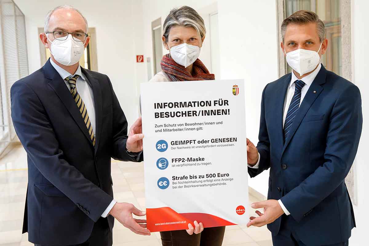 Die Träger werden angewiesen, die 2G-Besucherkontrollen konsequent durchzuführen. Zudem werden die bereits bisher durch die Heimaufsicht des Landes durchgeführten Kontrollen und Unterstützungsangebote ausgebaut. Landesrat Hattmannsdorfer vereinbarte zudem mit Landespolizeidirektor Andreas Pilsl, dass die Polizei die Einhaltung der 2G-Regel mit stichprobenartigen Besucherkontrollen unterstützen wird.