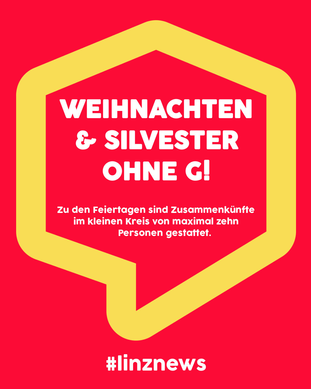 Für 24., 25.,26. sowie 31. Dezember sind Treffen von bis zu zehn Personen im privaten Bereich erlaubt. Familien mit elf Mitgliedern brauchen bei Zusammenkünften aber einen 2G-Nachweis. Großfamilien ab 25 Personen dürfen sich nicht gleichzeitg treffen.