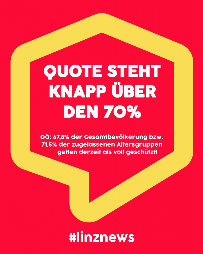Derzeit sind 67,8% der Gesamtbevölkerung bzw. 71,5% der zugelassenen Altersgruppen nach Angaben des Landes OÖ “vollimmunisiert “. 4.769 Zertifikate sind bereits wieder abgelaufen. Und am 1.2. sollen bis zu 70.000 weitere Grüne Pässe ablaufen (Stand 24.1.).