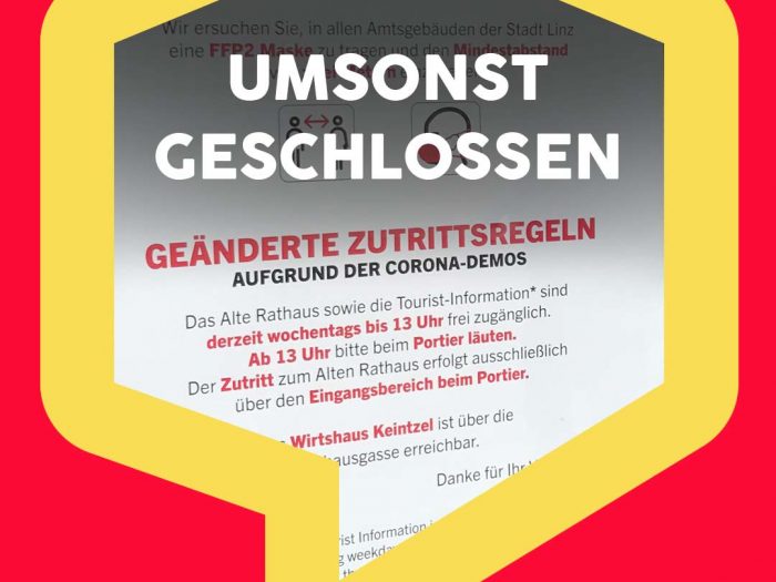 LINZ. Linzer Rathaus zur falschen Zeit geschlossen! Unser Artikel vom geschlossenen Rathaus soll laut Bericht in der Kronenzeitung vom 5.1. “vor allem online für mächtig … Rathaus umsonst zu! weiterlesen