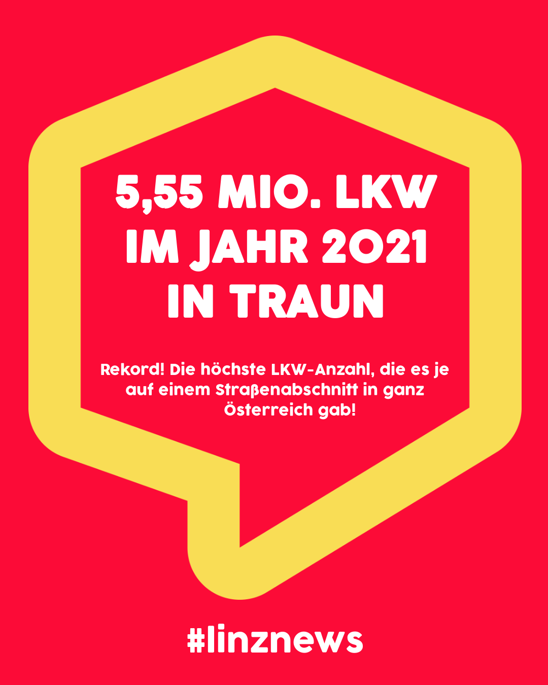 Noch nie fuhren in Österreich in einem Jahr mehr LKW auf einem Straßenabschnitt! Eine aktuelle VCÖ-Analyse zeigt jetzt rund 5,5 Millionen Lkw auf der Westautobahn A1 bei Traun im Jahr 2021.