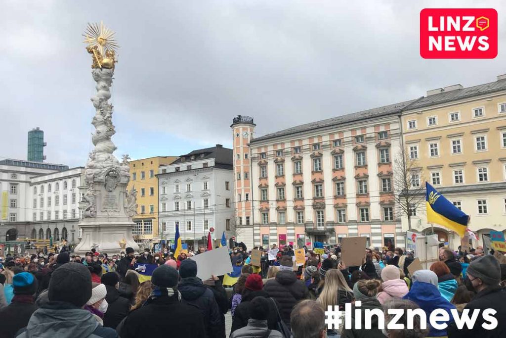 Nach einer Spontandemo am Donnerstag und einer kleinen Kundgebung gestern im Volksgarten kam es heute ab 14 Uhr zu einer Solidaritätskundgebung für die Ukraine am Linzer Hauptplatz!