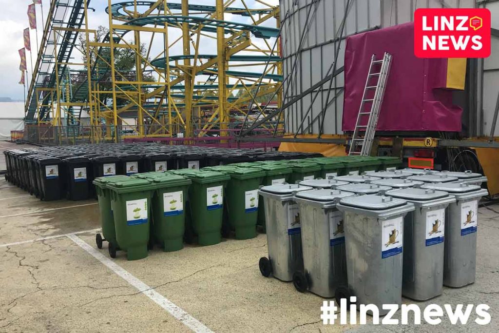 Der Veranstalter rechnet augenscheinlich heuer mit einem hohen Müllaufkommen. Entlang der Donau wurden mehrere große Containerschütten platziert. Auch direkt am Marktgelände stehen dutzende Mülltonnen bereit.