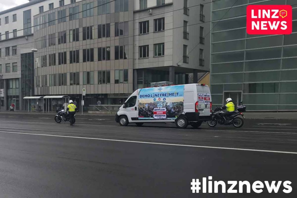 Auch heute gab es wieder eine der täglichen Demonstrationen von Maßnahmen-Gegnern am Hauptplatz. Die Gruppe formierte sich dann gegen 15 Uhr – wie auch schon die letzten Sonntage – zu einem Autokorso.