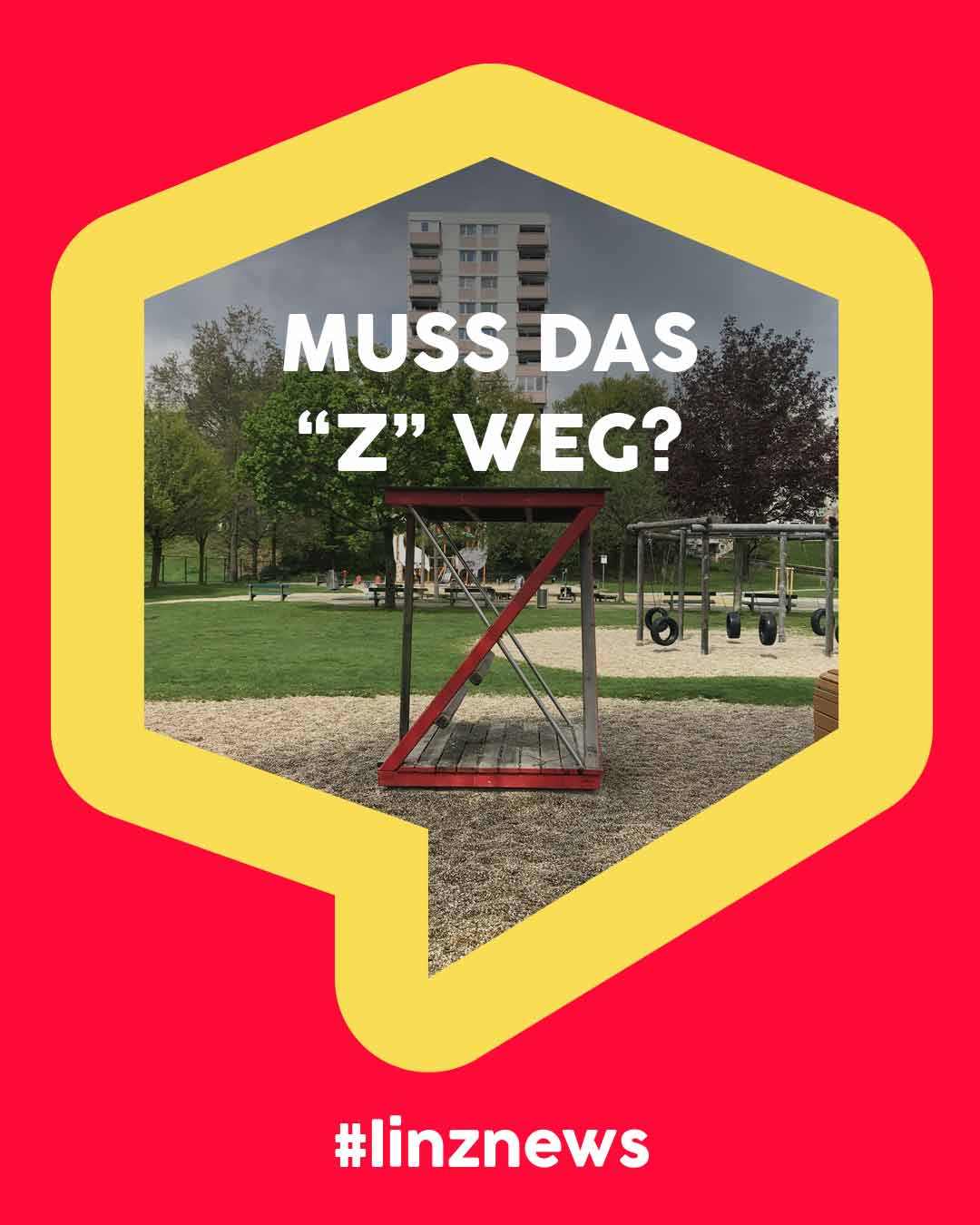 Mitten in Linz an der Donau steht – direkt an der neuen „Grünen Meile“ – ein Riesen-Z auf einem Spielplatz unweit der Eisenbahnbrücke.