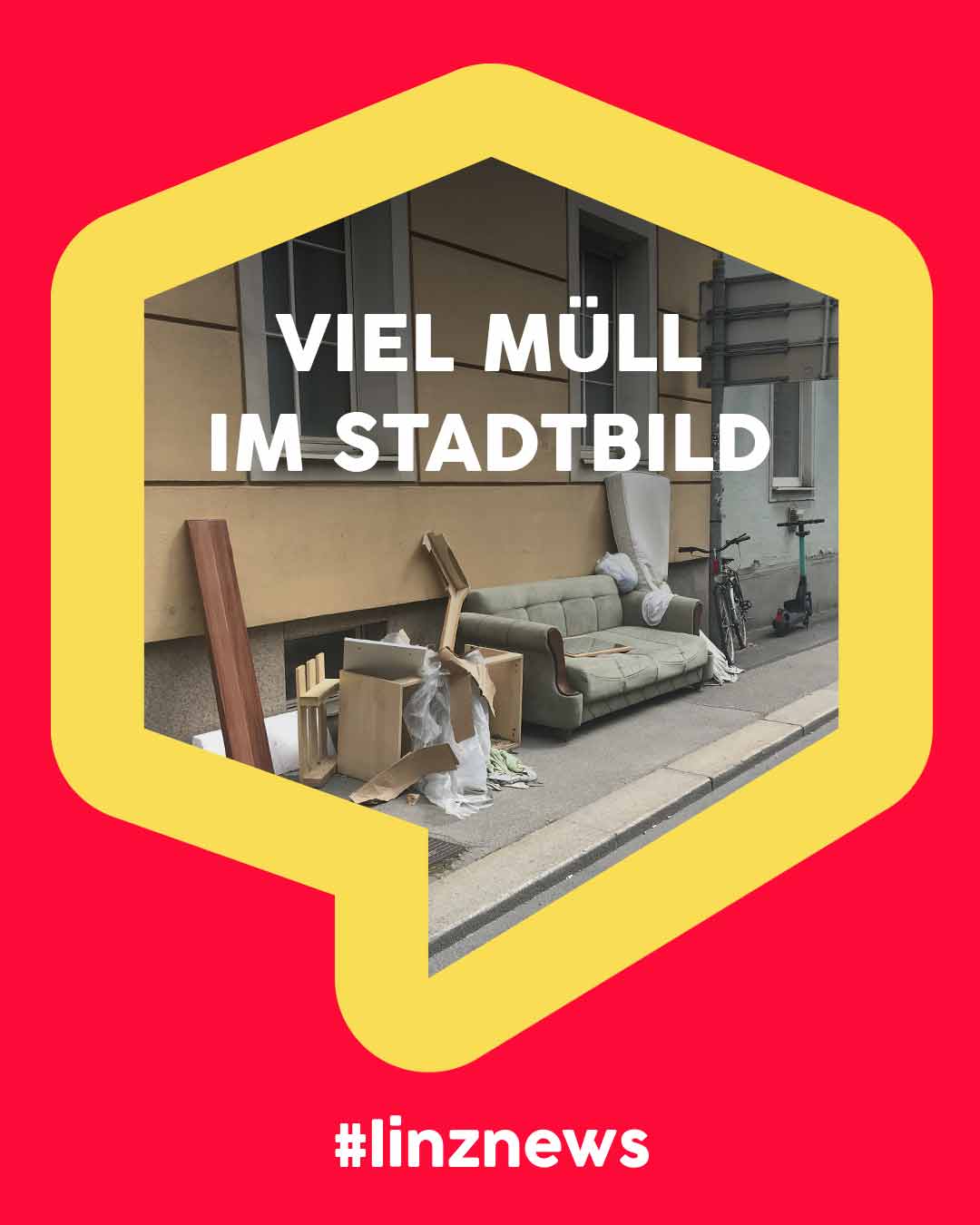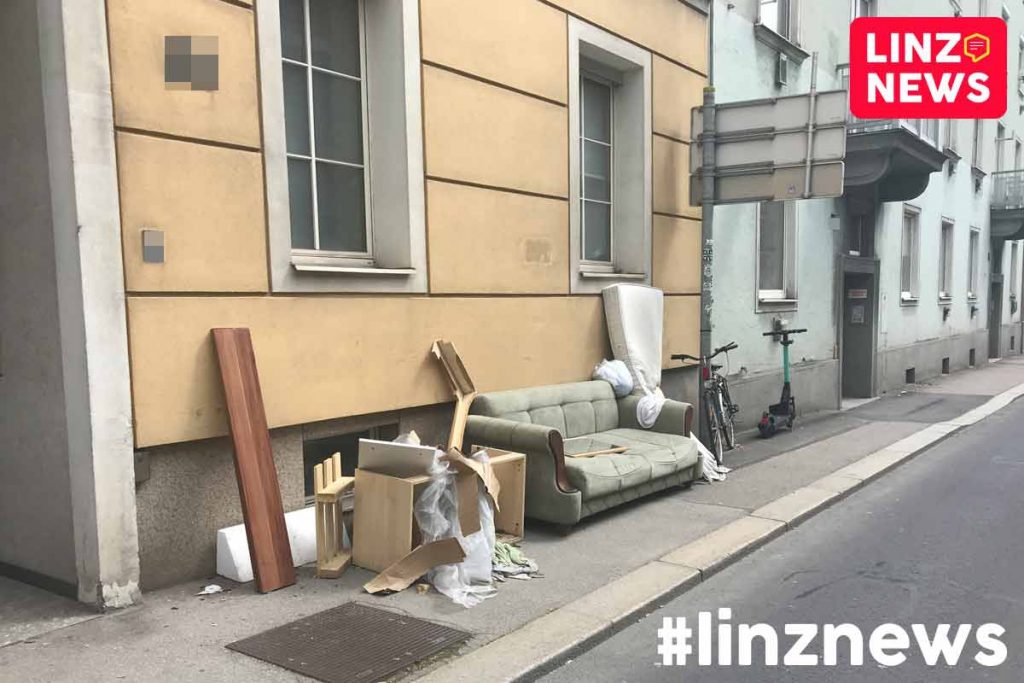 Illegal abgelegter Sperrmüll in vielen Straßen. Übervolle Mülleimer sobald man die Innenstadtroute des grünen E-Müll-Wagerls verlässt. Linz hat ein echtes Müllproblem.