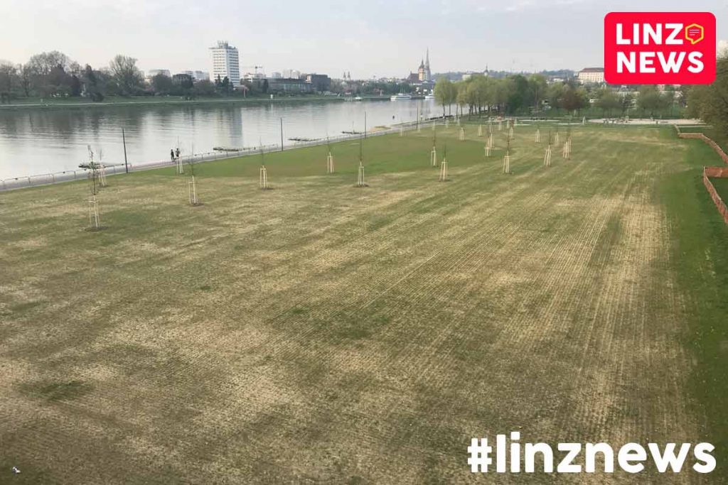 LINZ. Ehemaliger Bauplatz der Eisenbahnbrücke noch immer braun und gesperrt!