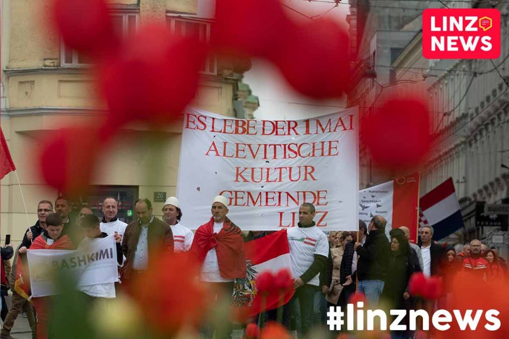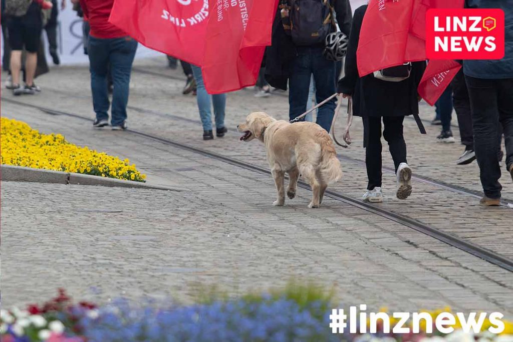 Das rote Linz marschierte heute zum „Tag der Arbeit“ über die Landstraße auf den Hauptplatz. Zuschauer fanden sich zur langen Rede des Vorsitzenden der SPÖ-Fraktion im Linzer Gemeinderat Stefan Giegler zwar so gut wie keine ein, die bereits durchmarschierten Gruppen bildeten dann später aber einen Spalier. Der Andrang galt aber auch dem Brathendlbrater und der Würstelausgabe mittig am Hauptplatz.
