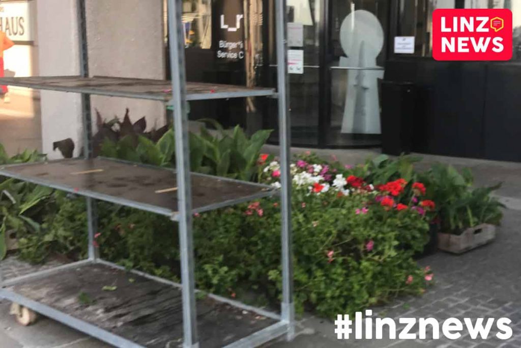 KLIMASTADT! Erst am 10. März wurden sogenannte “Frühblüher” beim Neuen Rathaus verpflanzt. Inzwischen wurden die nett anzusehenden Pflanzen aber schon wieder entsorgt und heute (10.5.) kam bereits die nächste Blumenlieferung per Kleinlaster.