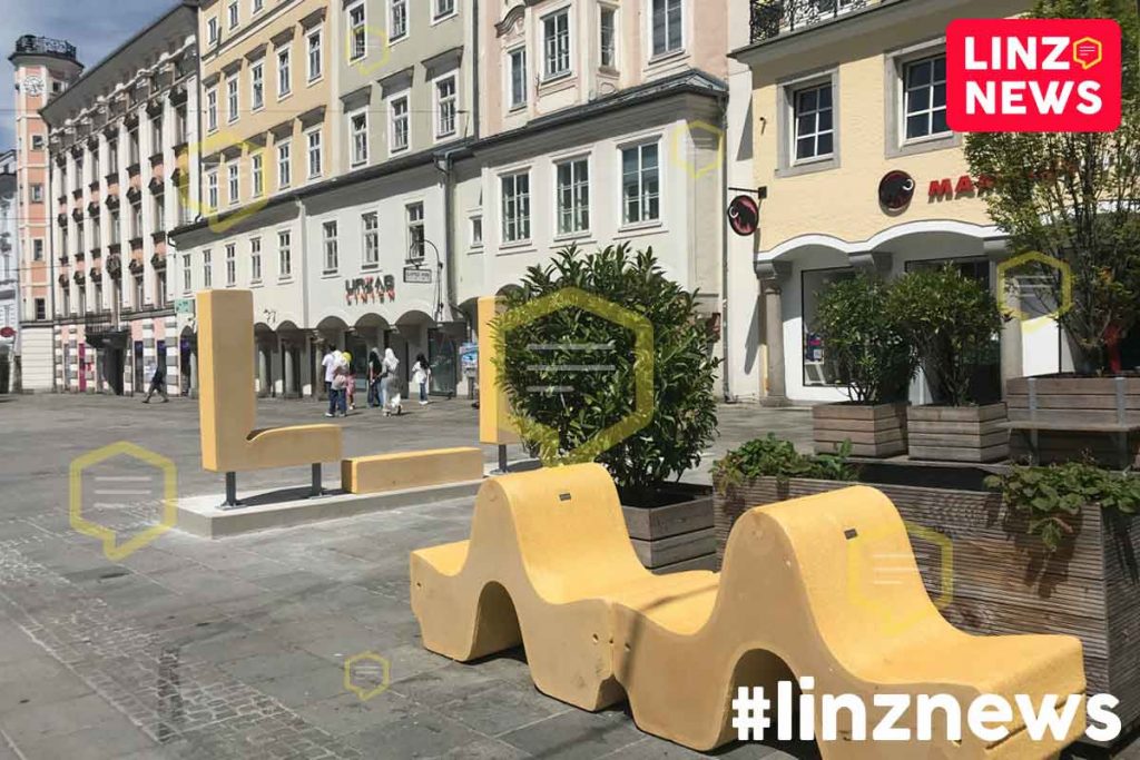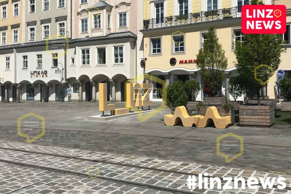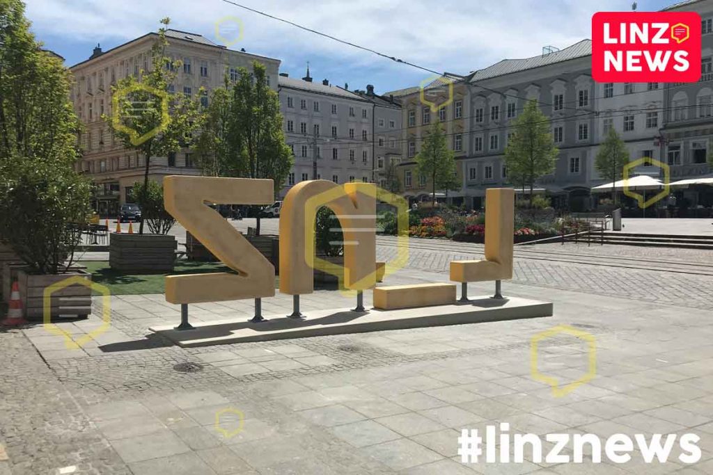 Und Klaus Luger war dann auch bei der Vorstellung eines schon bei der Enthüllung als „Beliebte Location für Social Media-Posts“ beworbenen L_nz Schriftzuges dabei. Die 25.000 Euro teuren Buchstaben aus Beton “zieren” seit vorgestern ja bekanntlich die städtische Oase am Hauptplatz. Auf der Vorderseite des zu begrünenden Gevierts.