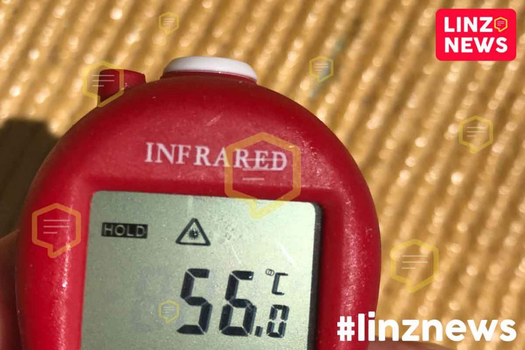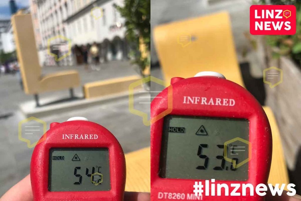 Das Infrarotthermometer zeigt wohlig warme 56°C auf den Sitzflächen!