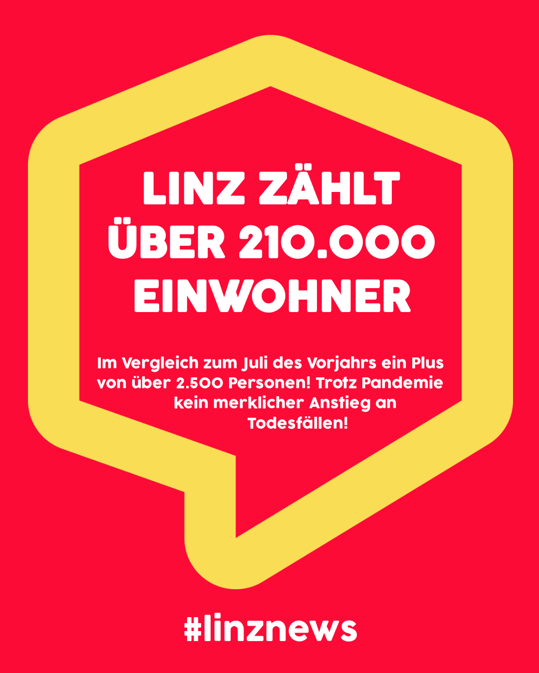 Die Anzahl der Hauptwohnsitze in der oberösterreichischen Landeshauptstadt steigt kontinuierlich. Nun wurde mit Stand 1. Juli sogar die 210.000er-Marke geknackt. Innerhalb von drei Monaten kam es bereits zu mehr als 500 neuen Anmeldungen von Hauptwohnsitzen in Linz (Stand: April 209.850; Juli 210.416). Der Vergleich zum Juli des Vorjahrs zeigt sogar eine Zunahme von über 2.500 Personen.