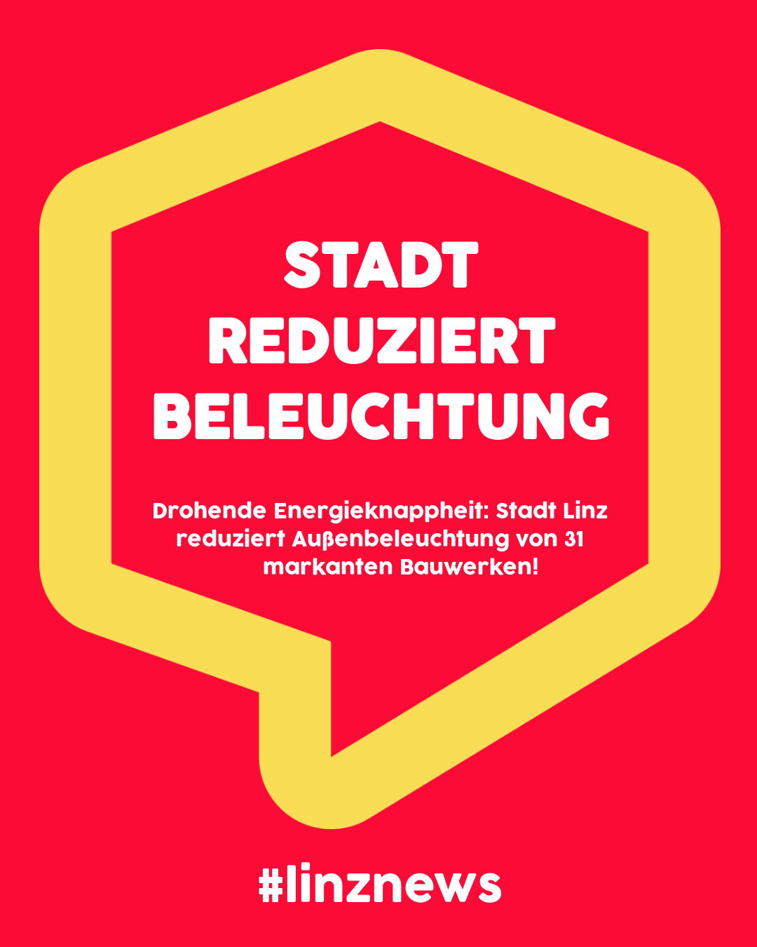 Die Stadt Linz reagiert auf die derzeit in Europa drohende Energieknappheit. Als erste Maßnahme reduziert die Stadt Linz die Beleuchtungsdauer der so genannten Effektbeleuchtung an Brücken, Bauwerken, Kirchen oder Bäumen in Parkanlagen. Insgesamt werden derzeit von der Stadt 31 Bauwerke beleuchtet, beispielsweise das Alte Rathaus und die Neue Eisenbahnbrücke.
