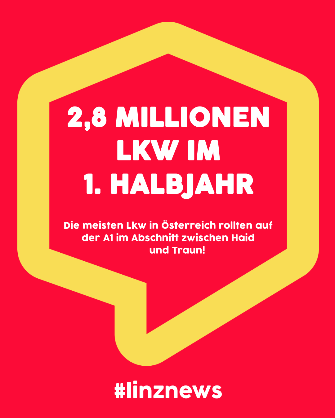 Die meisten Lkw rollten auf der A1 im Abschnitt Haid und Traun mit rund 2,8 Millionen.