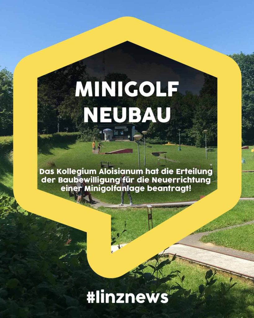 Als Ersatz für die abzureissende Minigolfanlage hat nun der Schulverein Kollegium Aloisianum v.d. Kommr. Mag. Alois Froschauer die Erteilung der Baubewilligung für die Neuerrichtung einer Minigolfanlage in Linz, Freinbergstr., auf dem Grundstück Nr. 853/1, EZ 23, KG Waldegg, beantragt.