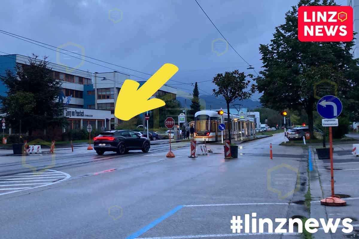 LINZ. Die neue „Sperre“ der Ferihumerstraße wird nun via Straßenbahnschienen umfahren!