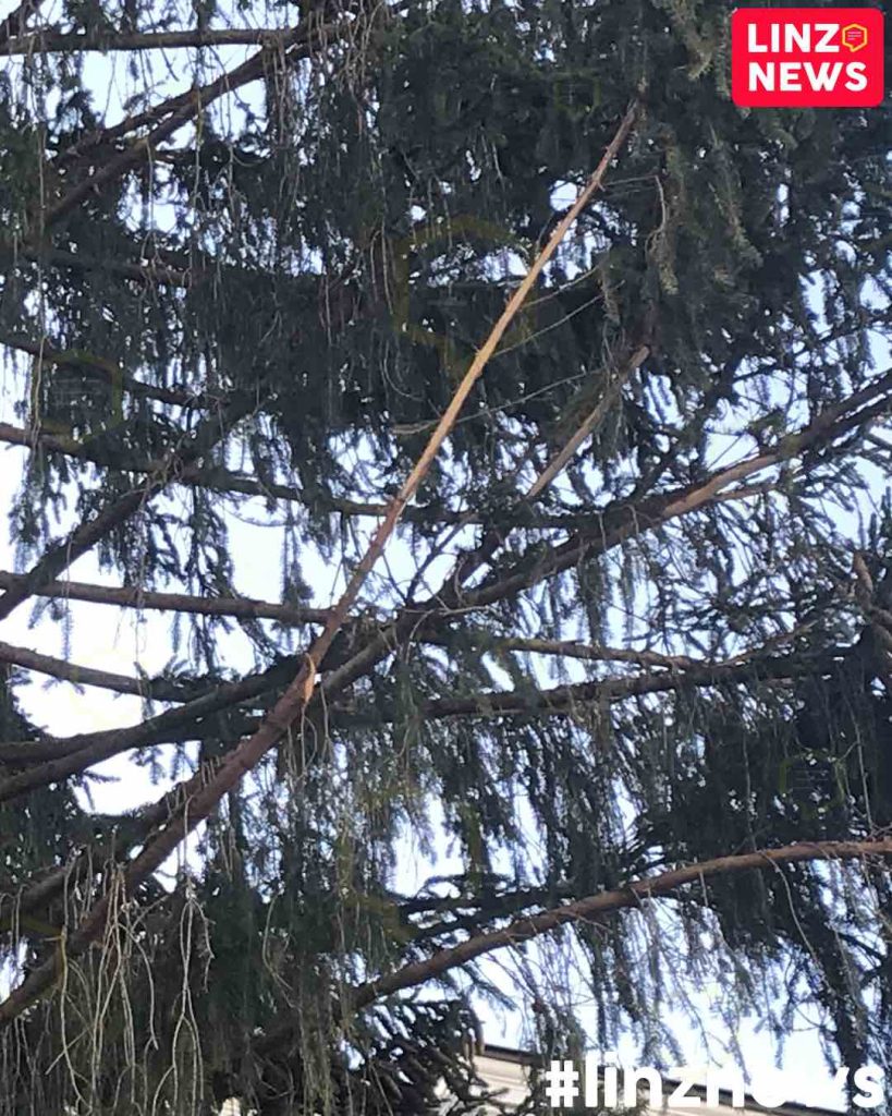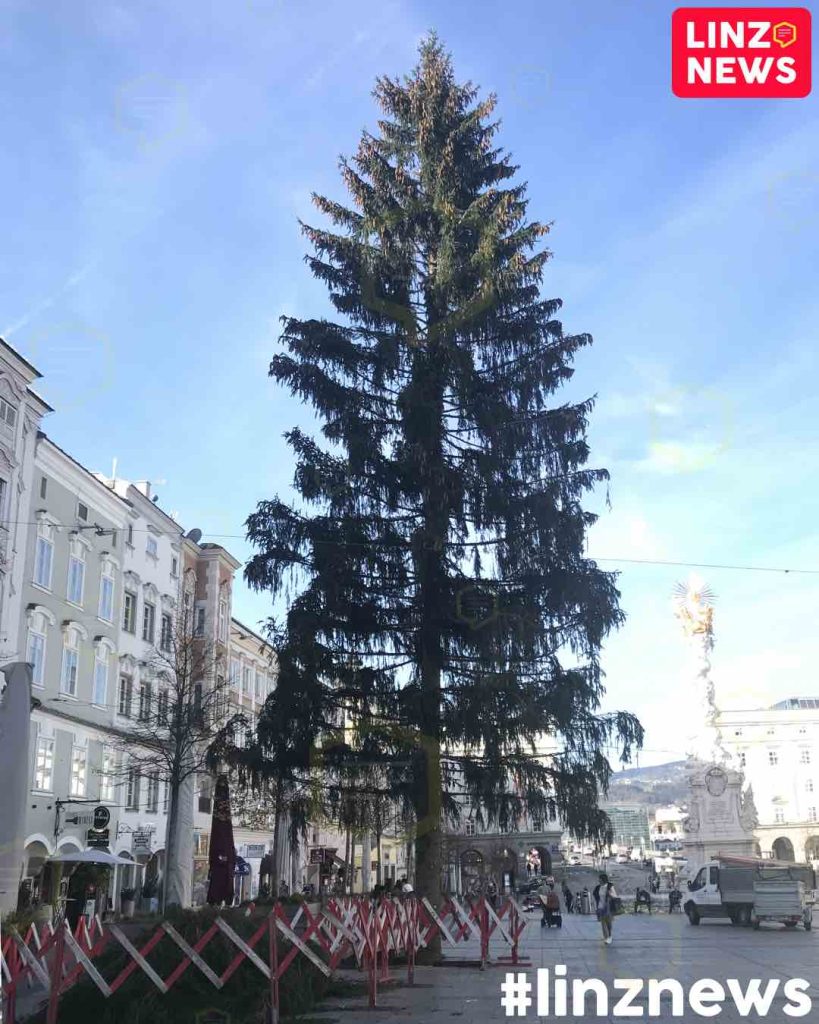 Auch wenn erst der 3. November ist, steht in Linz schon der Christbaum. Hauptgrund ist die Anlieferung der Hütten für den Christkindlmarkt. Der Baum könnte ansonsten später nicht mehr aufgestellt werden.