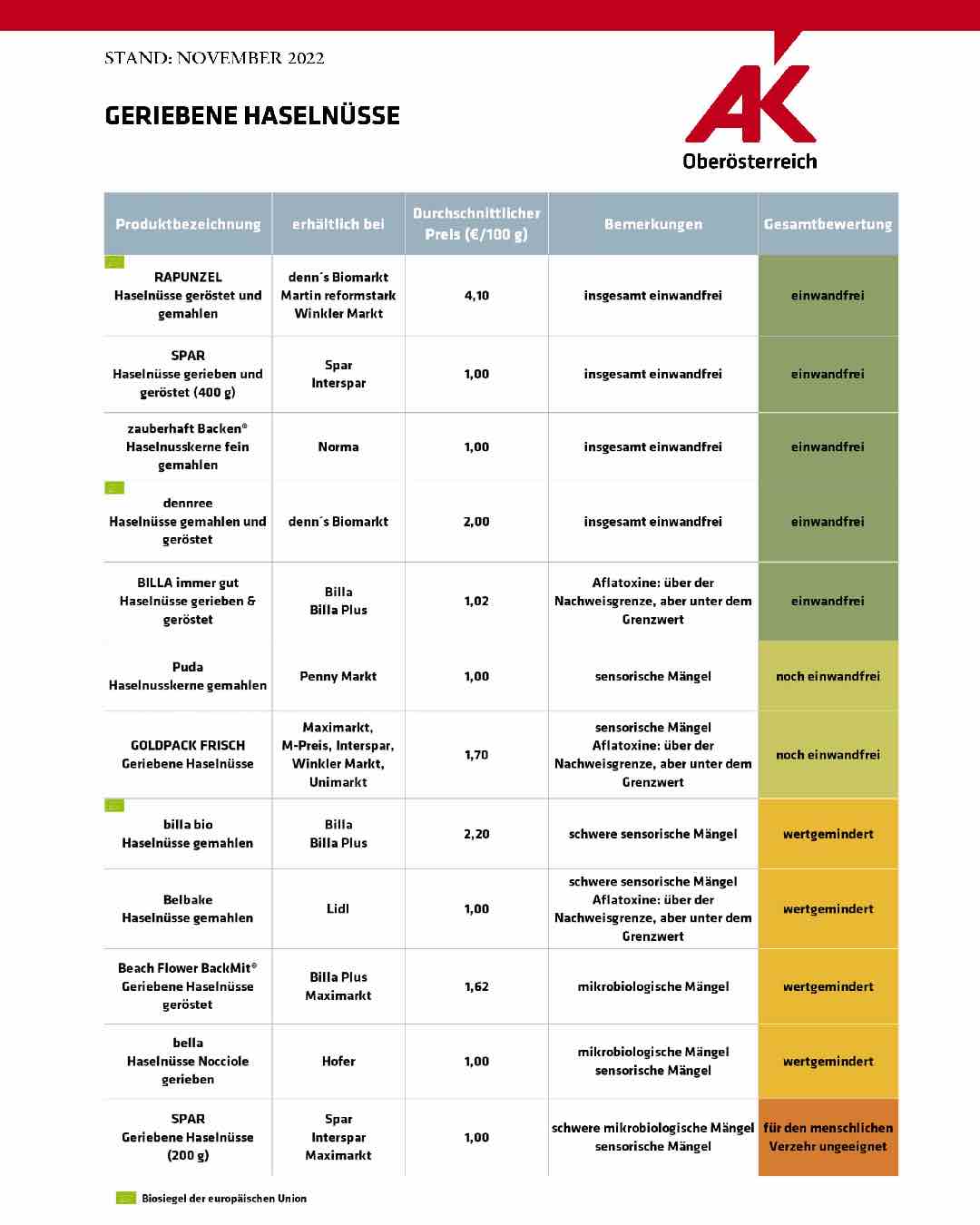 LINZ. Vor der Backsaison hat die Arbeiterkammer OÖ Haselnüsse testen lassen!