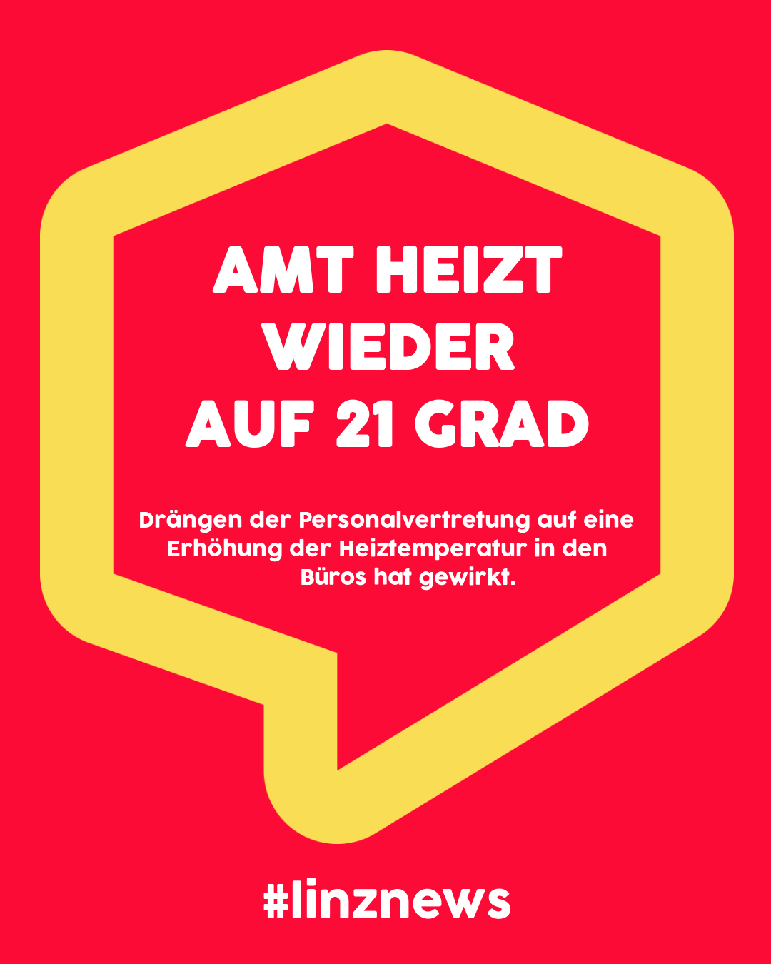 Ab Montag, 14. November wird es in den Magistrats Büros wieder wärmer. Um genau zu sein, um 2 Grad wärmer auf 21 Grad!