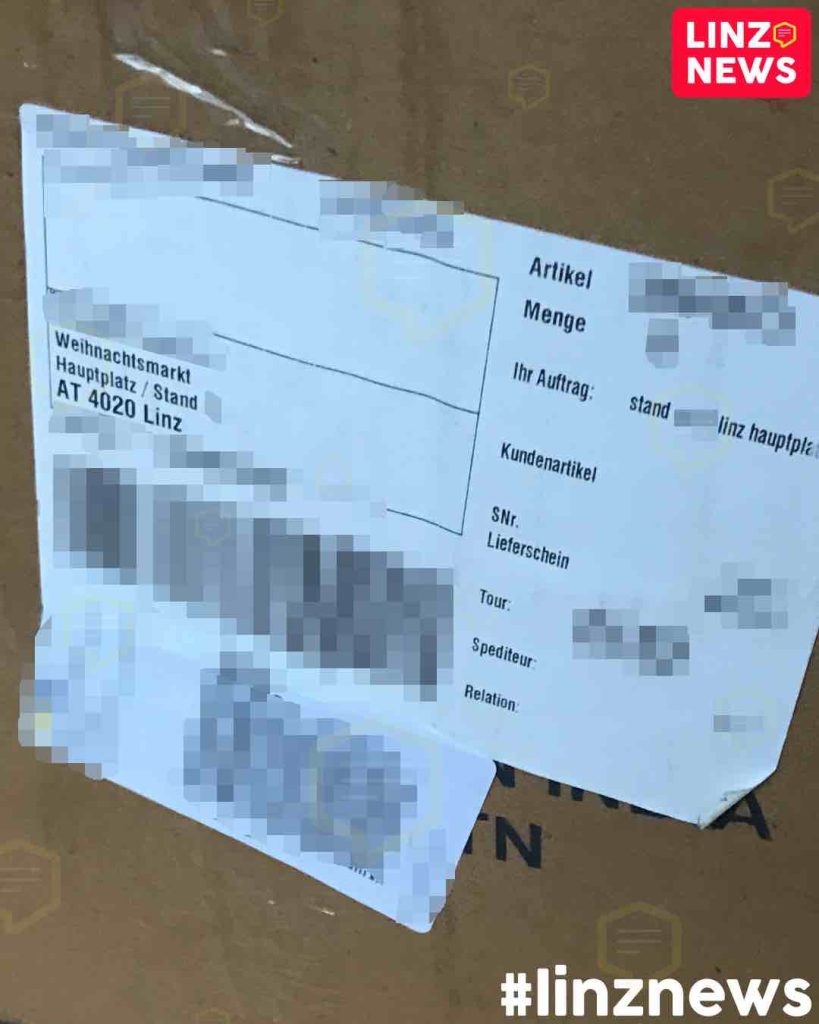 Ein besonders kurioser Produktlauf am Markt für “selbst Gemachtes”: Per Aufdruck als “Made in India” ausgewiesene Ware wurde laut dem Tourlabel zu einem Großhändler nach Hamburg geliefert. Von dort kamen die Kartons dann direkt auf den Hauptplatz zur Hütte zugestellt. Weihnachtsmarkt, Hauptplatz, Stand XXX, 4020 Linz steht im Adressfeld!