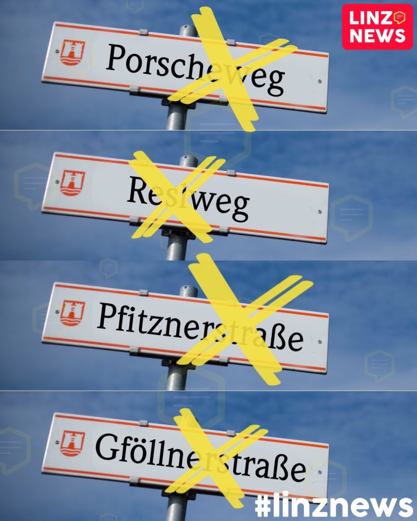 Porscheweg, Reslweg, Pfitznerstraße und Gföllnerstraße werden gestrichen und das Stadtarchiv wird bis Februar neue Namen vorschlagen. Die Tendenz dürfte übrigens ersten Gerüchten nach zu Frauen als neue Namensgeber gehen. Denn auch an der Unterrepräsentiertheit von Frauennamen auf Linzer Straßenschildern arbeiten sich bekanntlich einige Stadtpolitiker sehr gerne und konsequent ab.