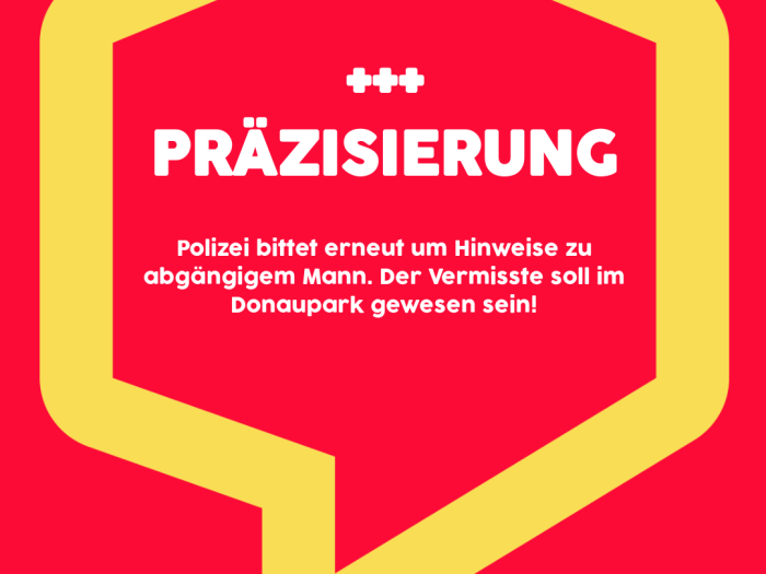 Der aktuelle Ermittlungsstand lässt den Schluss zu, dass der wahrscheinlich letzte Aufenthaltsort an der Donaulände zwischen Lentos und Arcotel war, weshalb ein tragischer Unglücksfall vermutet … Präzisierung! Erneut Hinweise zu abgängigem Mann erbeten. Der Vermisste soll im Donaupark gewesen sein! weiterlesen