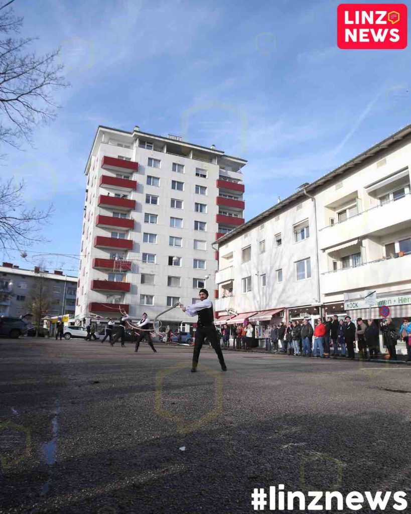Das warme Wetter lockte zahlreiche Zuschauer zur Brauchtumspflege in den Süden von Linz. Ob der Temperaturen wurde in den umliegenden Schanigärten bis weit nach Mittag anständig der Frühshoppen genossen.