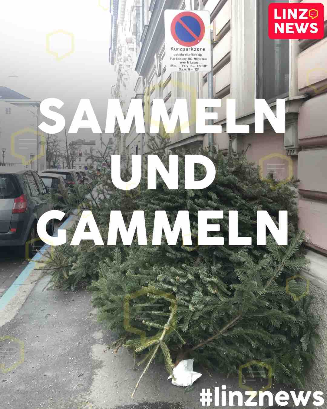 LINZ. Gesammelte Christbäume blockieren Gehsteige!