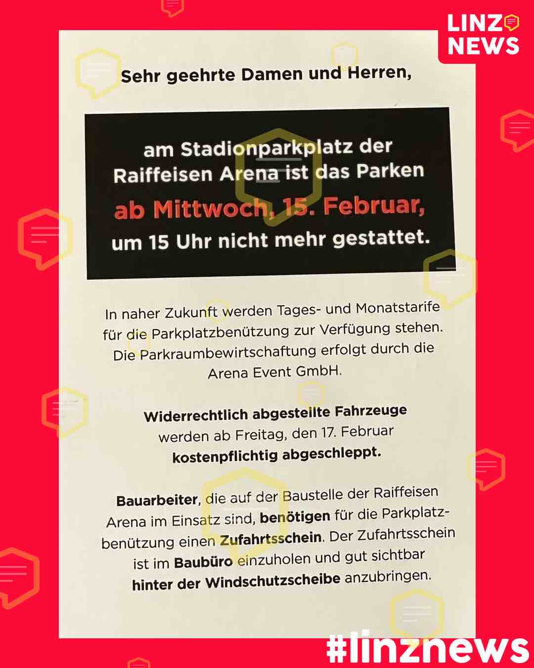 Nebst der Causa Doppeltickets – wir berichteten – wird das lange bekannte Verkehrs- und Parkproblem nun schon vor dem sogenannten “Stadion-Softopening” der Lask Damen am 19.2. Tagesthema.