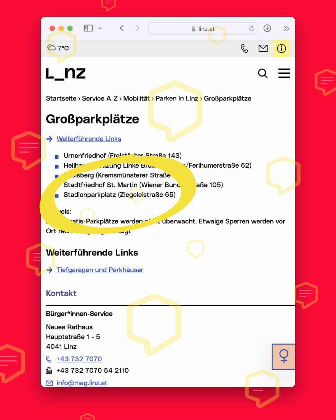 Gestern fanden erste Leser die den Parkplatz auf der Gugl nutzen, dieser wird immerhin sogar von der Stadt Linz beworben, ein Infoblatt am Auto.