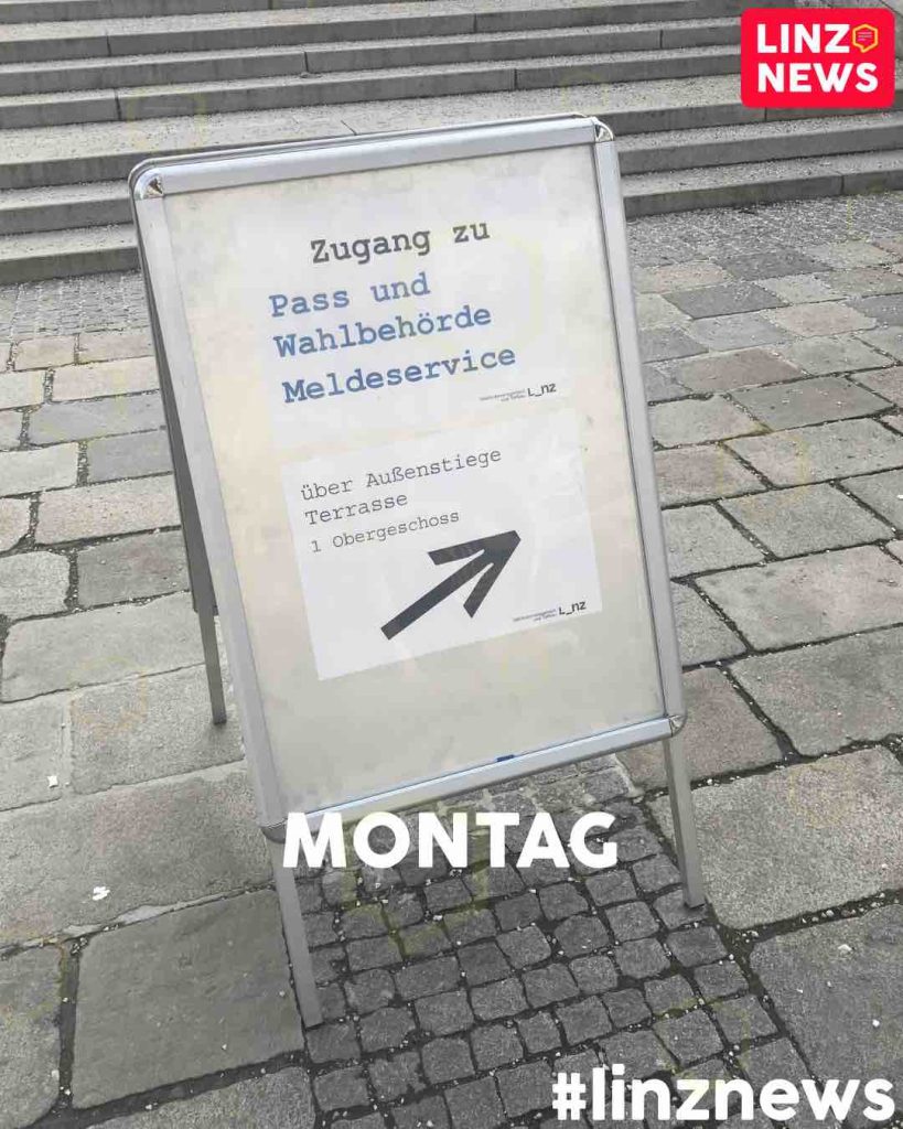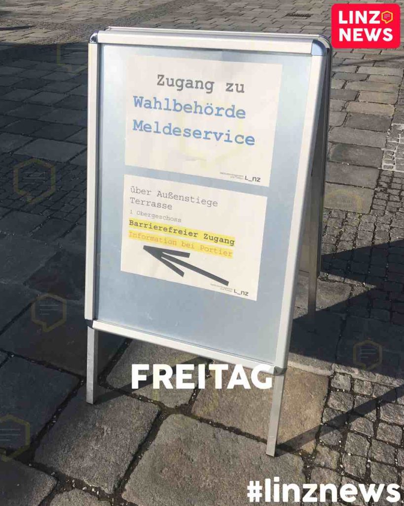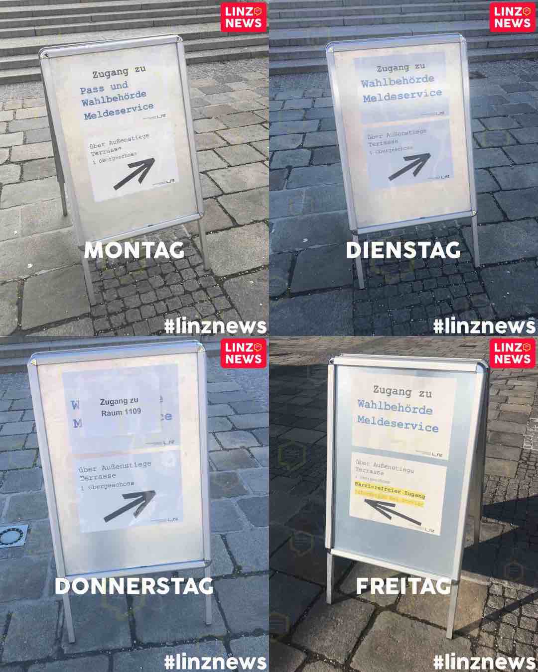 LINZ. Blick auf die Stadtverwaltung in 4 Schildern.