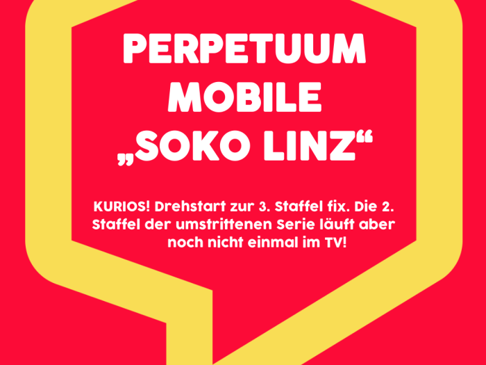 KURIOS! Drehstart zur 3. Staffel fix. Die 2. Staffel der umstrittenen Serie läuft aber noch nicht einmal im TV! Dieses System würde Schüler jeden Alters … Perpetuum Mobile „Soko Linz“ weiterlesen