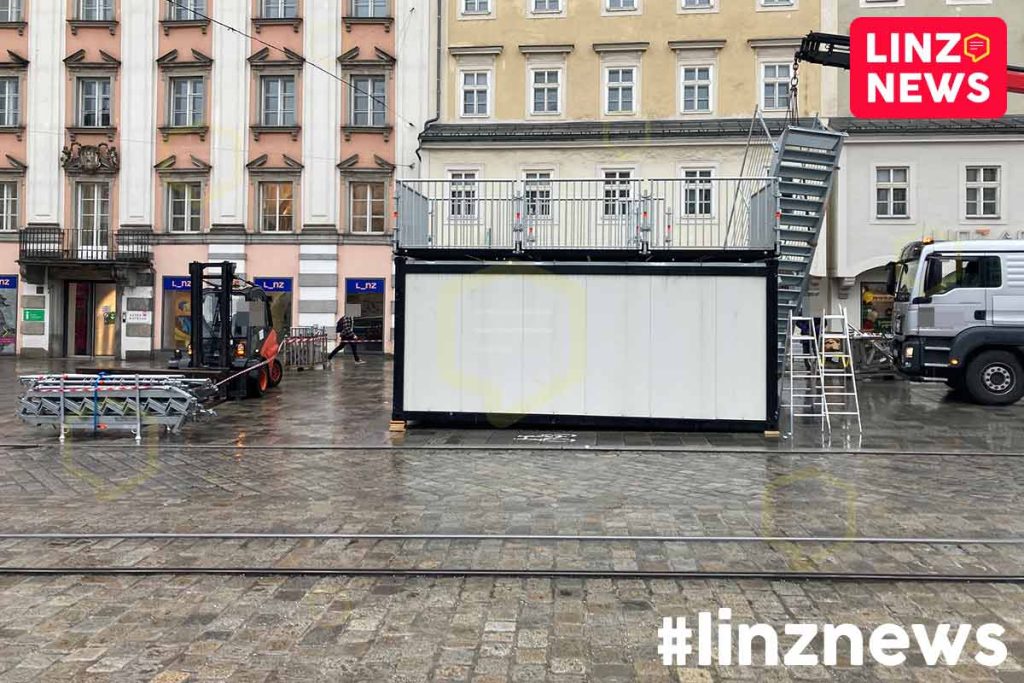 LAUFEN. Am Sonntag geht der heurige Linz Marathon über die Bühne. Am Hauptplatz laufen dafür bereits die Aufbauarbeiten.