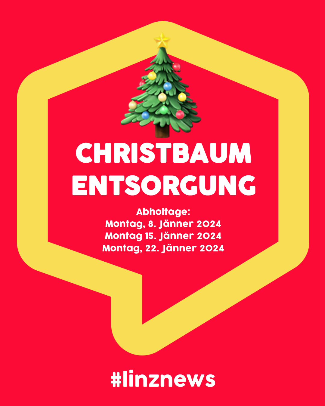 LINZ. Schon vor dem Fest sind die Entsorgungstermine für Bäume fix!