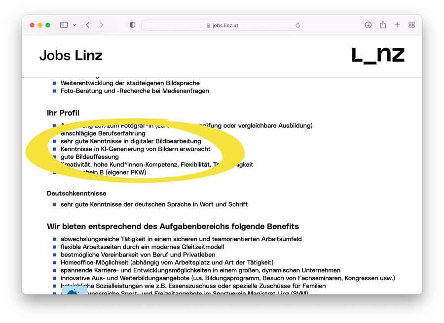 Stadt sucht Teilzeit-Fotograf: “Kenntnisse in KI-Generierung von Bildern erwünscht”!