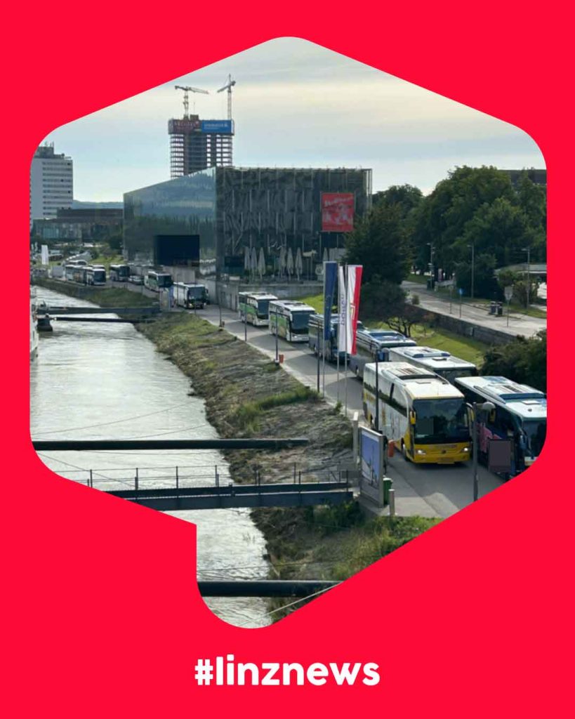 @linznews 🚨 OVERTOURISM 😮 Irrer Andrang am quasi Bus-Terminal beim Lentos 🚌 Fast 20 Busse – GLEICHZEITIG – stellten sich alleine gestern gegen 8 Uhr zur Abholung der Kreuzfahrer an. 👉 Die teils hochbetagten Gäste werden direkt von den Schiffen zu den Ausflugszielen bis nach Südböhmen gebracht. 📊 Etwa ein Drittel der Passagiere unternimmt laut Studie einen Ganztagesausflug nach Salzburg oder Krumau und nur knapp 10% verbleiben individuell in Linz. #overtourism #linz #linznews #verkehr #klimastadt #stau #fyp #foryou ♬ Originalton – Linz News