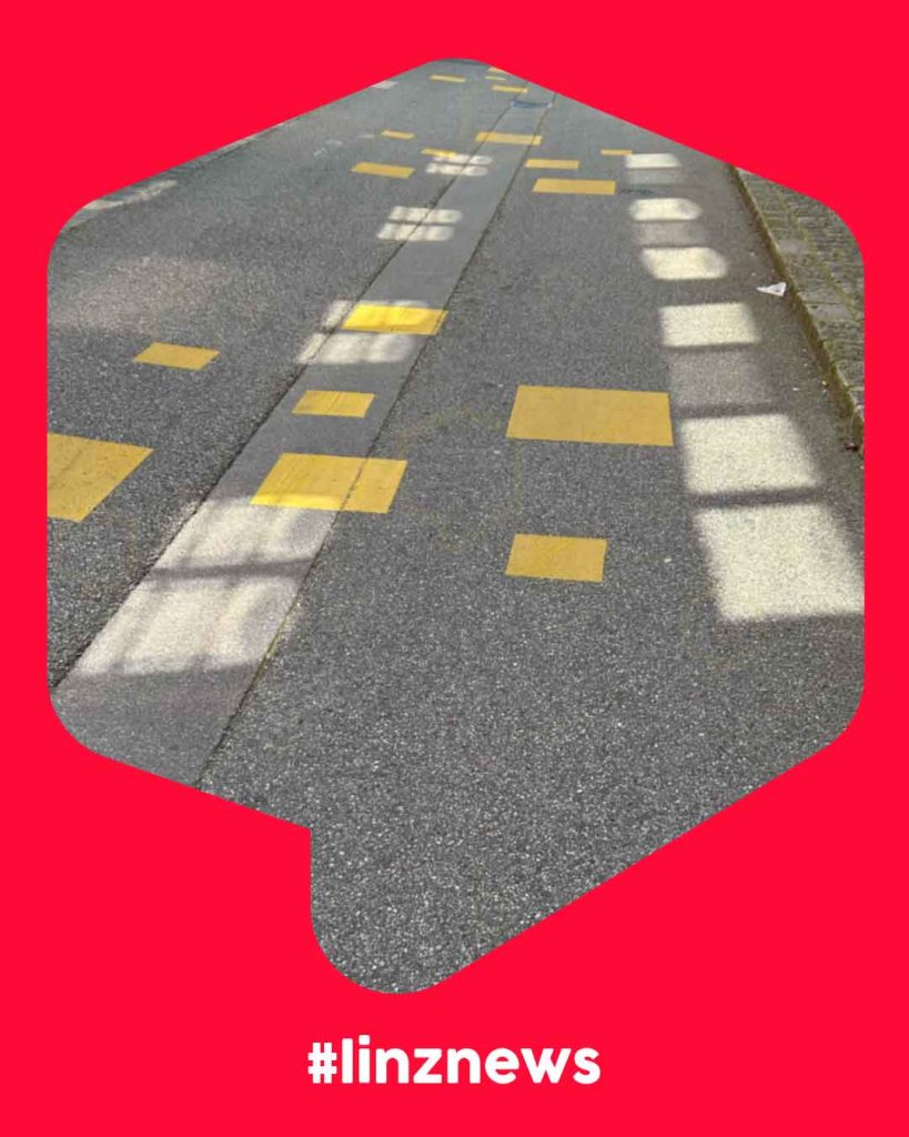 🟨 Kuriose Linzer Rad-Straßen-Bemalung ist jetzt durch Spiegelungen der Sonne noch "attraktiver".
