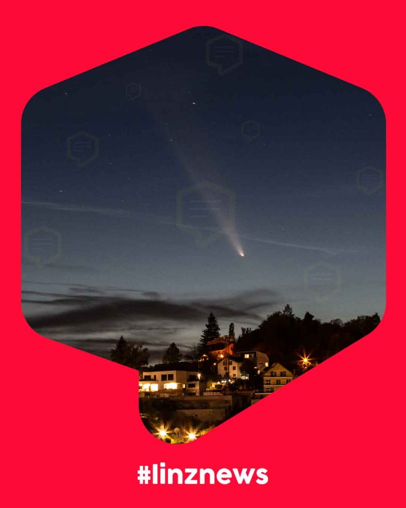 Der Komet C2023-A3 (Tsuchinshan-Atlas) zog seitlich über den Pöstlingberg und überflog quasi den Schablederweg und die Hohe Straße in Urfahr.