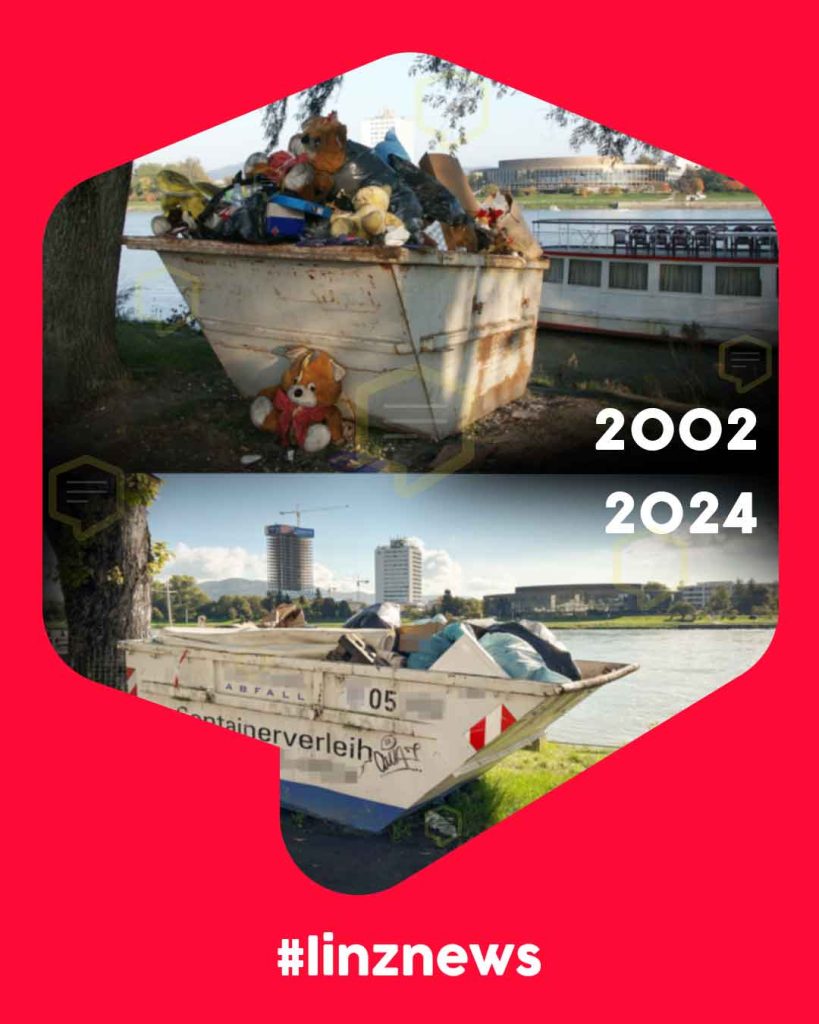 Blickt man in das Bildarchiv, so findet sich das XXXL-Müllschüttensystem auch dort schon dokumentiert. Gemischter Abfall scheint an der Donau also einen langen Atem zu haben. Jedenfalls seit mehr als 20 Jahren.