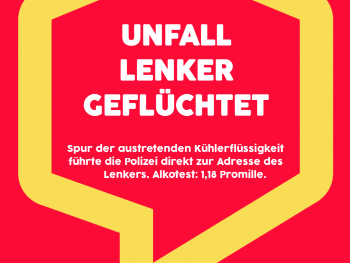 Alkoholisierter Unfalllenker flüchtete und konnte ausgeforscht werden