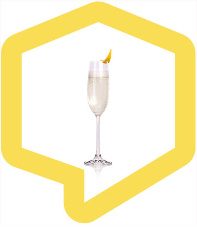 Gin, Zitronensaft, Zuckersirup, Champagner